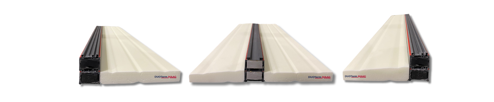 W DUOterm MAAG rdzeniem jest listwa MAAGterm, która pełni w nim funkcję elementu konstrukcyjnego. Natomiast boczne wypusty z XPS stanowią rozszerzenia parapetu, zapewniając ciągłość izolacji termicznej od ramy okna aż po ścianę. Dzięki temu rozwiązaniu zyskujemy nie tylko doskonałą izolacyjność, ale także większą stabilność i trwałość całej konstrukcji.