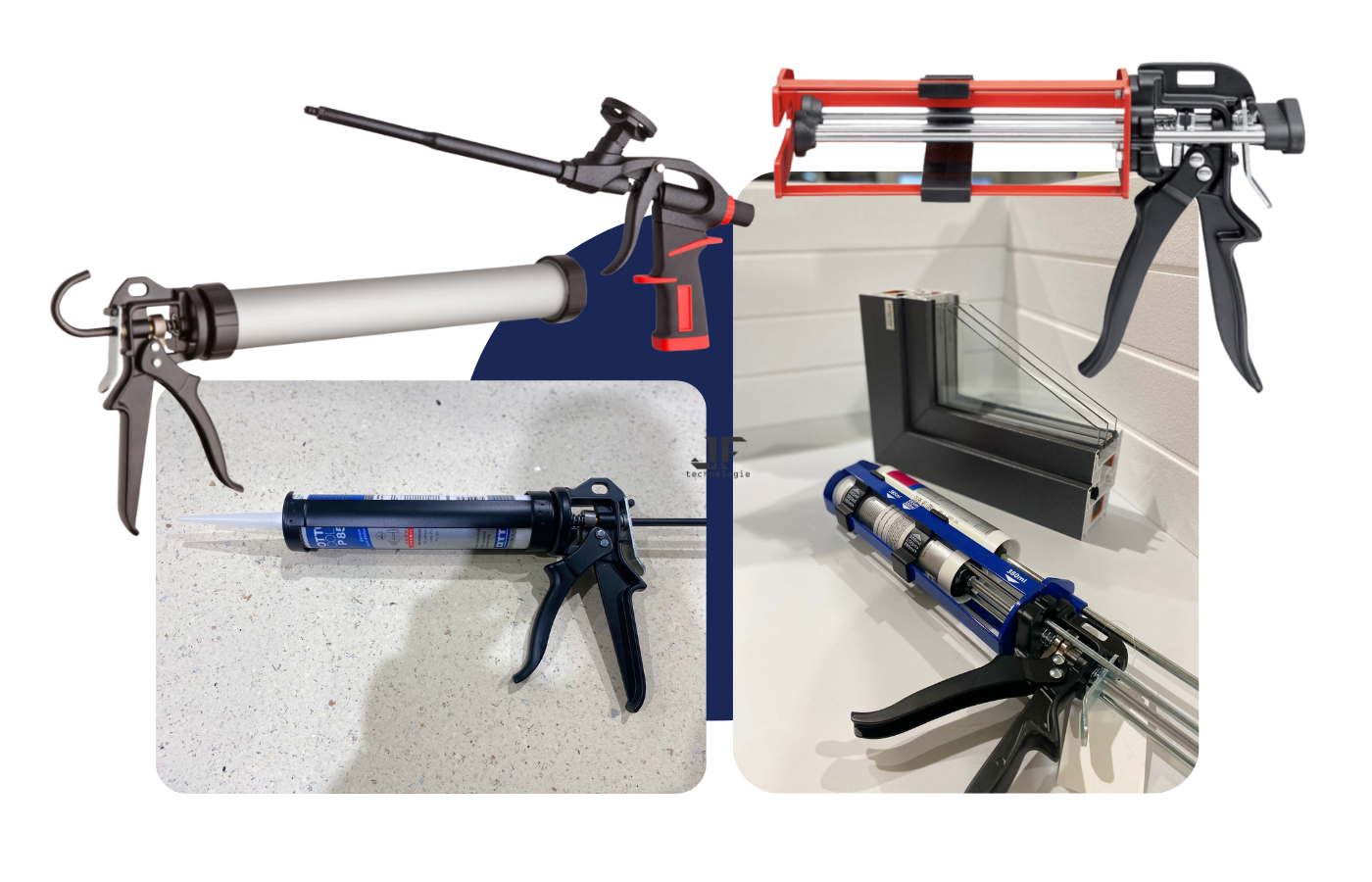 Aby jeszcze bardziej ułatwić realizację inwestycji, do oferty JF Technologie dołączyły wyciskacze i pistolety do klejów oraz silikonów, idealnie dopasowane do produktów dostępnych w naszym sklepie.