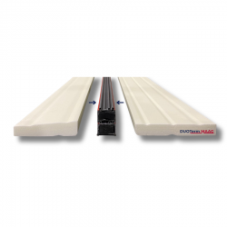 - Produkt dostarczany jest jako zestaw do samodzielnego złożenia. Poszczególne elementy z XPS wyposażone są w taśmy klejące – wystarczy usunąć folię ochronną i przykleić je do rdzenia. Dla zwiększenia trwałości połączenia zaleca się dodatkowe zastosowanie kleju montażowego.