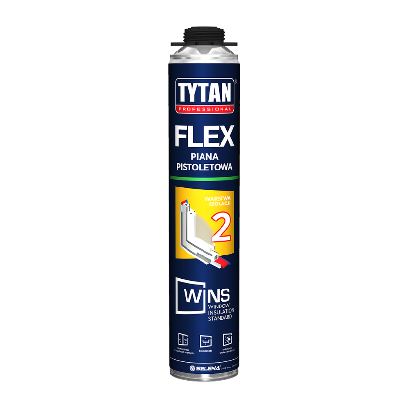 Piana pistoletowa TYTAN PROFESSIONAL WINS FLEX to wysokoelastyczna piana poliuretanowa, przeznaczona do uszczelnienia i izolacji okien i drzwi. Dzięki niskiej postekspansji i regularnej strukturze doskonale sprawdza się przy montażu stolarki otworowej.